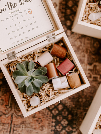 At this time, no one knew the date we had picked for our wedding. I wanted to include something that reminded them, but in a cute way! I saw a tiny print out of a calendar month with the date hand-marked with a heart on Pinterest + knew I had to include that!